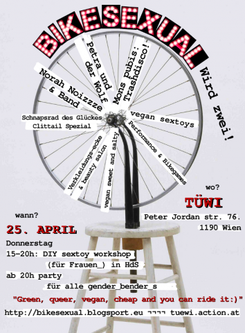 Thursday, 25. April 15 to 20h BIKESEXUAL vegan DIY sextoy workshop